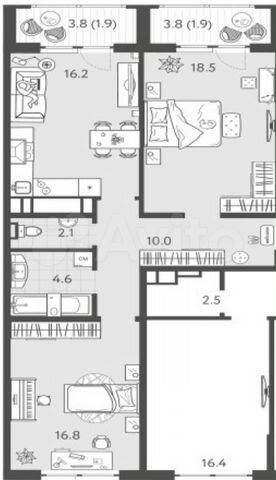 75 кв.м., 2 комн. квартира
