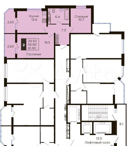 61 кв.м., 2 комн. квартира