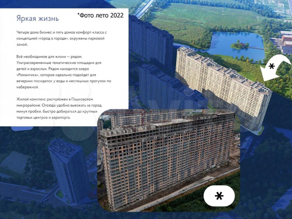 ЖК представляет собой целый жилой квартал, состоящий из 4-х 27-этажных свечек «бизнес-класса» на стилобате (25-этажей +2 этажа парковка) и 5 24-этажных домов класса «комфорт» (один 2-х подъездный, два 3-х подъездных и два 4-х подъездных). «Свечки» (бизнес-класс) будут с вентилируемым фасадом из керамогранита, витражным остеклением. Высота потолков – 2.80 м. Четыре лифта. Первый этаж – коммерция. В стилобате – двухуровневая парковка. Есть выбор квартир и бизнес классе и в комфорте! Строительство идет полным ходом.. Сроки сдачи всего комплекса: Сдан, высота потолков: 2.70, класс дома: Бизнес.