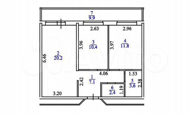 65 кв.м., 2 комн. квартира