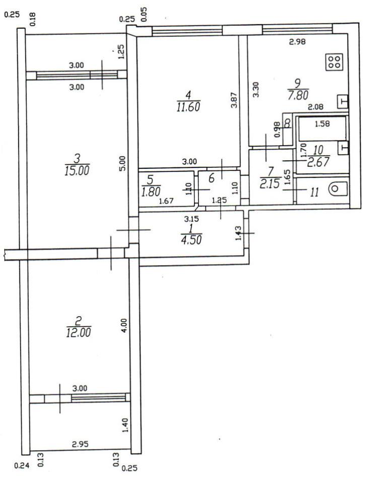 60 кв.м., 3 комн. квартира