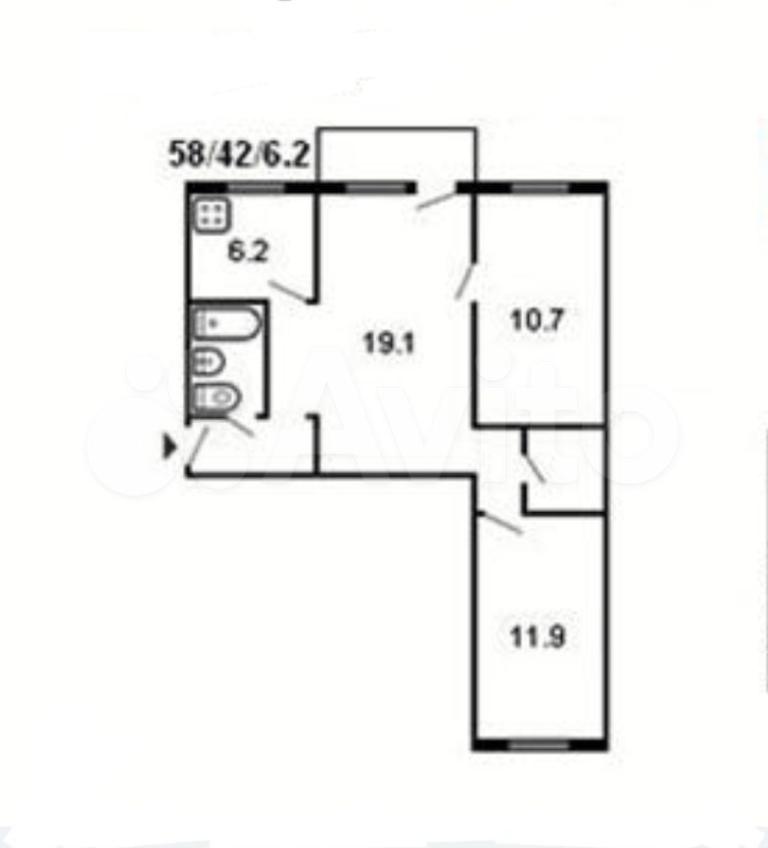 60 кв.м., 3 комн. квартира