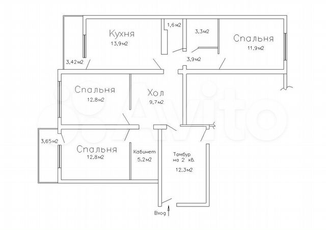 82 кв.м., 3 комн. квартира