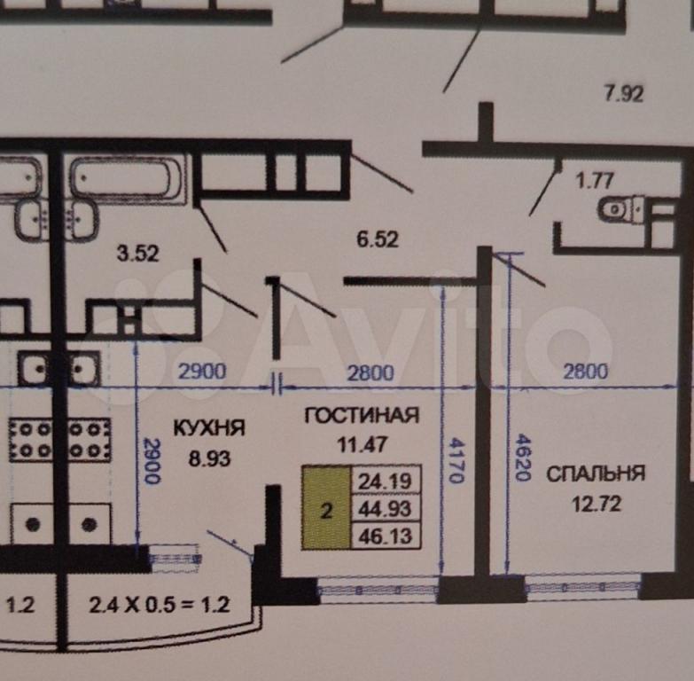 44 кв.м., 2 комн. квартира