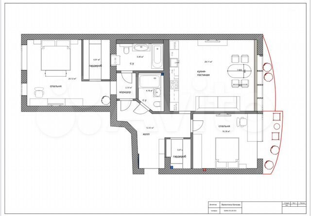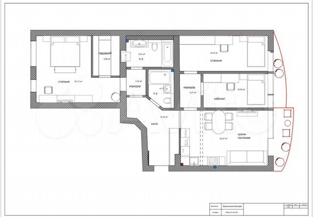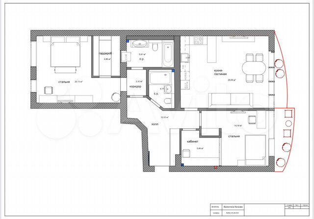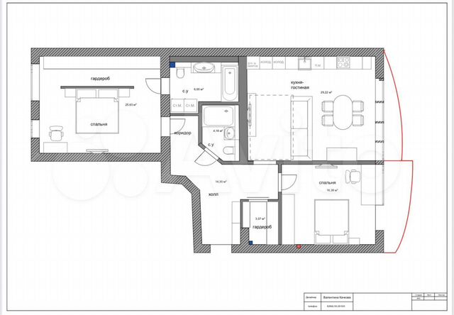99 кв.м., 2 комн. квартира