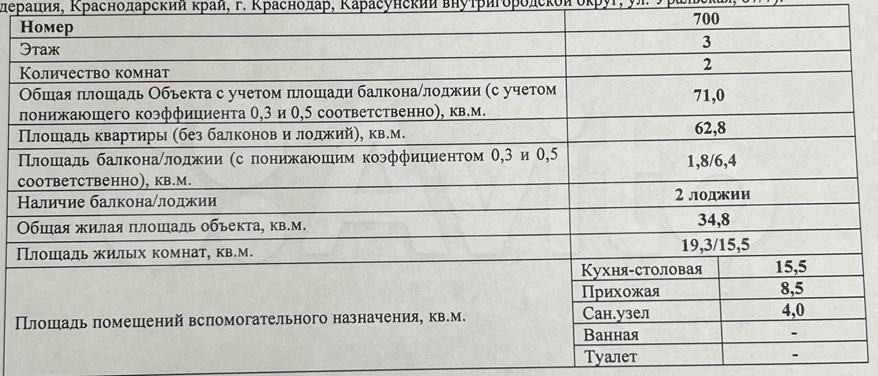 Продажа квартиры Краснодарский край Краснодар г КМР (промзона) ЖК Урал Уральская ул. Количество комнат - 2, общая площадь - 71 кв.м. , площадь кухни - 15 кв.м. на 3 этаже 25 этажного дома. В квартире Предчистовая.