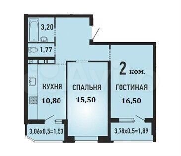64 кв.м., 2 комн. квартира