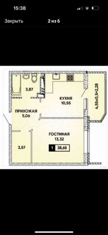 38 кв.м., 1 комн. квартира