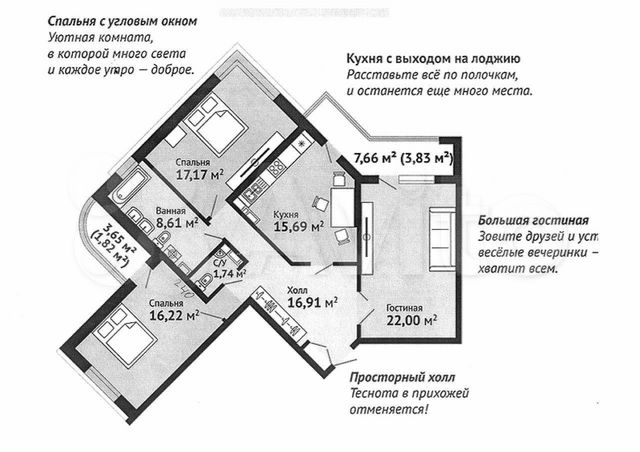 99 кв.м., 3 комн. квартира