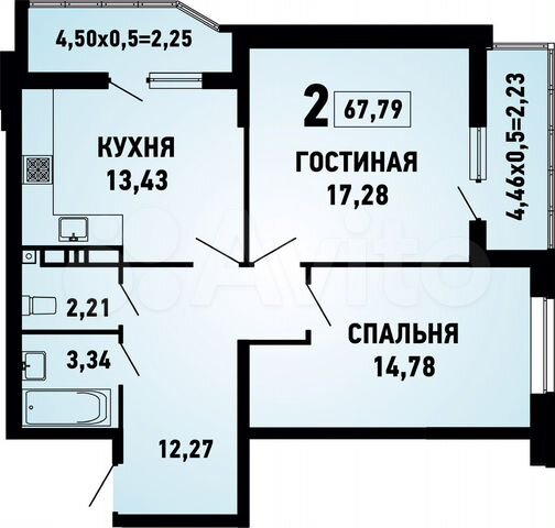 67 кв.м., 2 комн. квартира
