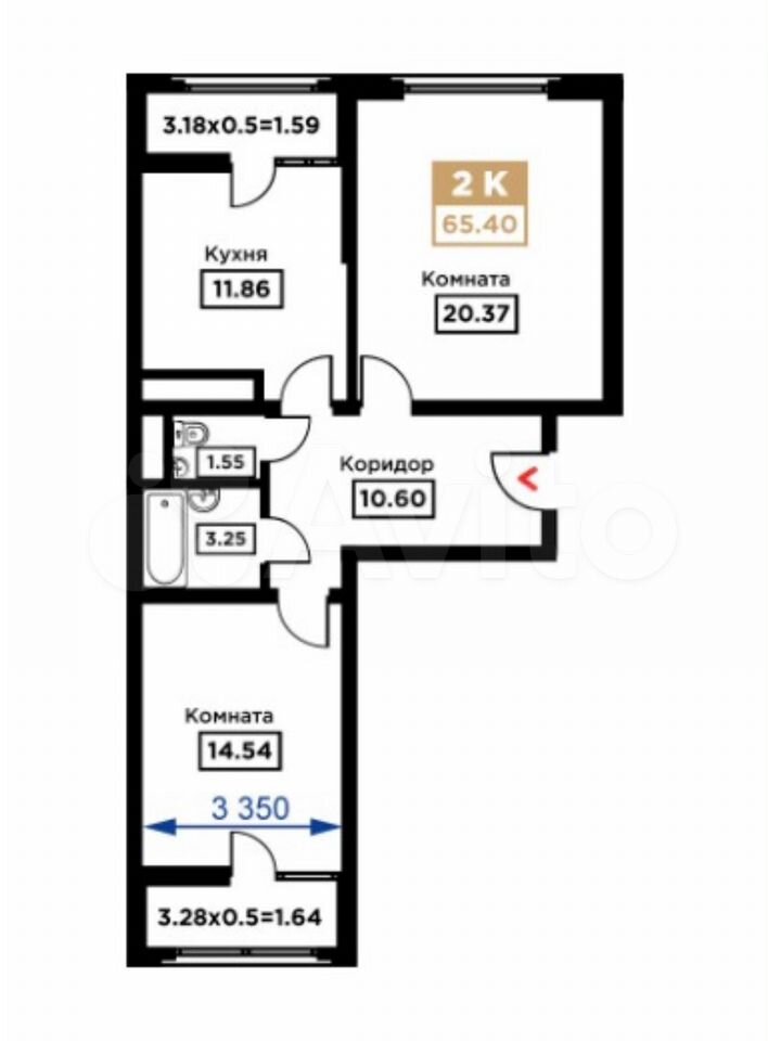 65 кв.м., 2 комн. квартира