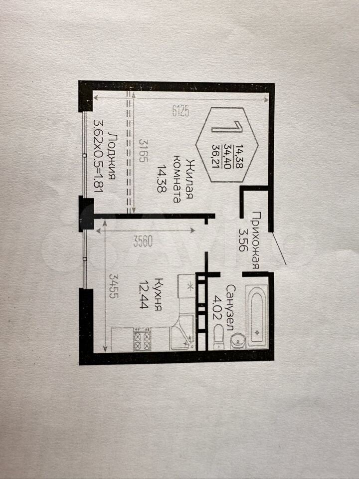 38 кв.м., 1 комн. квартира