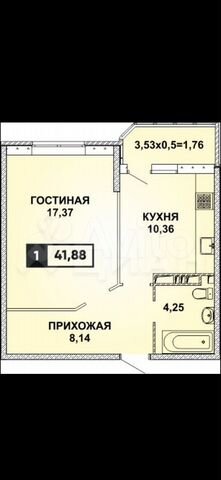 41 кв.м., 1 комн. квартира