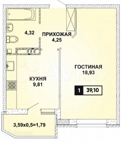 39 кв.м., 1 комн. квартира