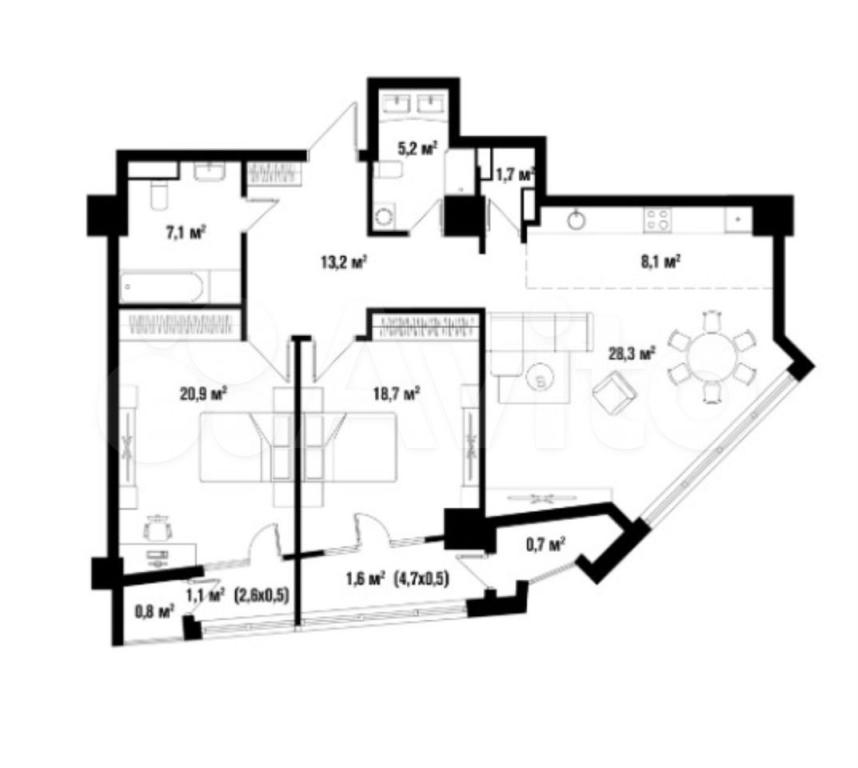 107 кв.м., 3 комн. квартира