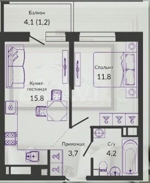 35 кв.м., 1 комн. квартира
