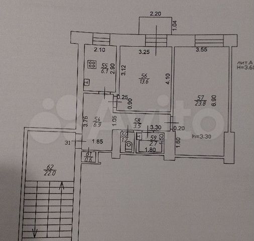 58 кв.м., 2 комн. квартира