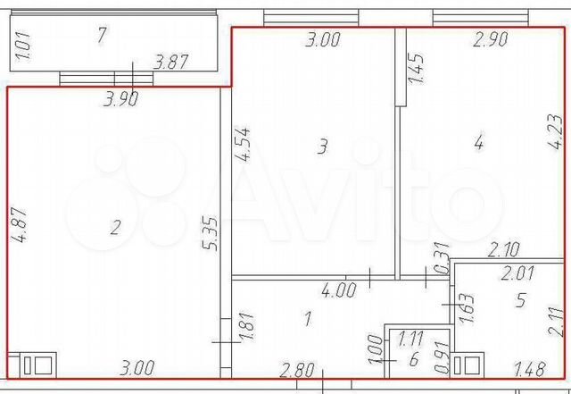 57 кв.м., 2 комн. квартира