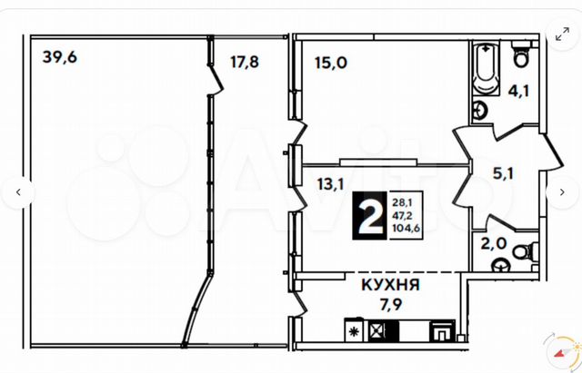 104 кв.м., 2 комн. квартира