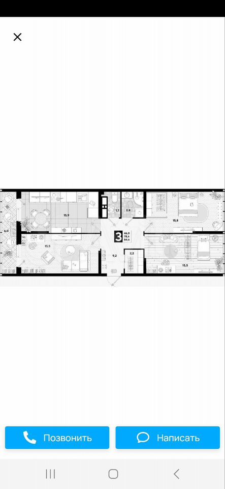 83 кв.м., 3 комн. квартира