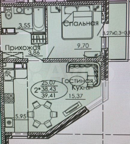 39 кв.м., 1 комн. квартира