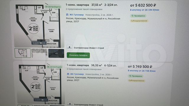 Продаётся 1 комн. квартира за 5 800 000 рублей. Краснодар, № 47971