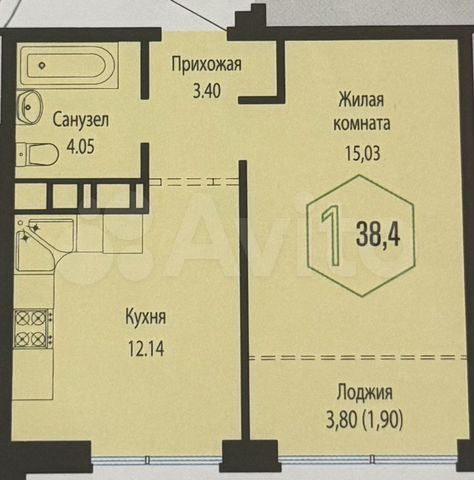 39 кв.м., 1 комн. квартира