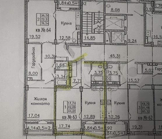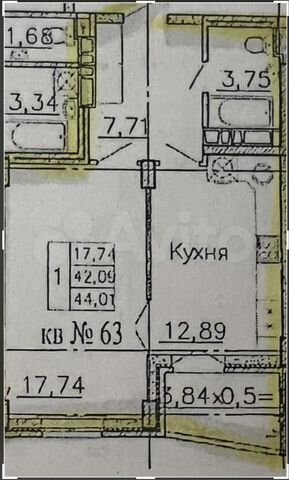 44 кв.м., 1 комн. квартира
