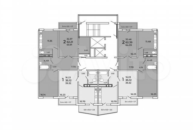 61 кв.м., 2 комн. квартира