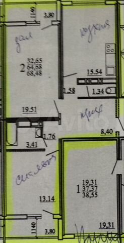 64 кв.м., 2 комн. квартира