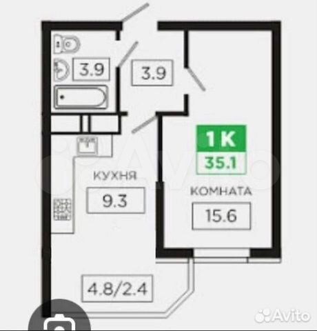 41 кв.м., 1 комн. квартира