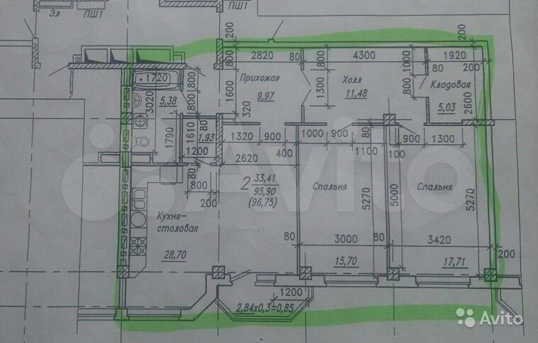 97 кв.м., 3 комн. квартира