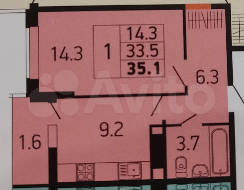 35 кв.м., 1 комн. квартира
