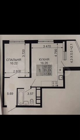 38 кв.м., 1 комн. квартира