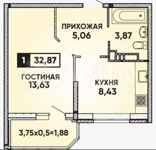34 кв.м., 1 комн. квартира