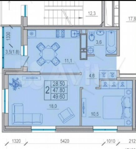 49 кв.м., 2 комн. квартира