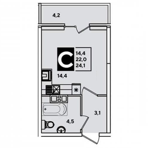 24 кв.м., 1 комн. квартира