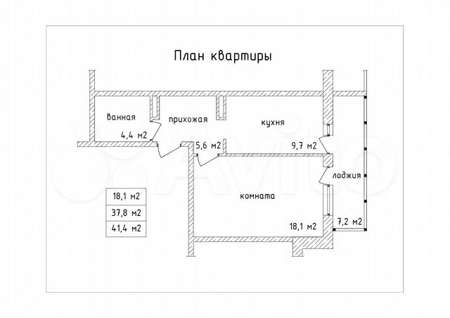 41 кв.м., 1 комн. квартира