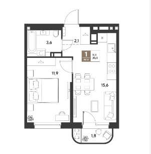 35 кв.м., 1 комн. квартира в новостройке