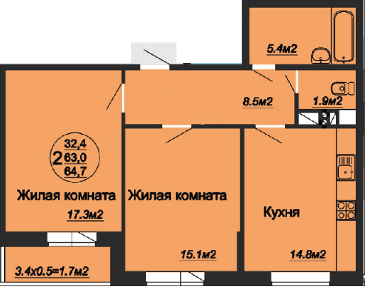 2 комн. квартира